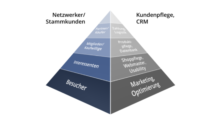 Im Bereich des Web-Business lassen sich über die Form der Pyramide verschiedene Themenbereiche visualisieren. Die Darstellungen dieser ermöglichen die Verzahnung ähnlicher Zwischenschritte auf dem Weg vom Interessenten hin zum Kunden in den Bereichen Marketing, Kosten und Controlling. Die Bedeutung dieser drei Bereiche für das Web-Business ist auf diese Weise horizontal auf der gleichen Konversionsstufe zu untersuchen und darzustellen.